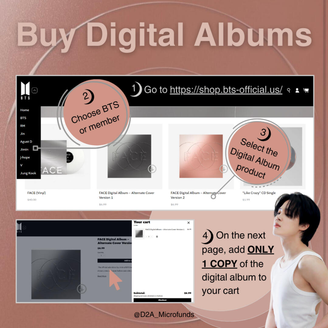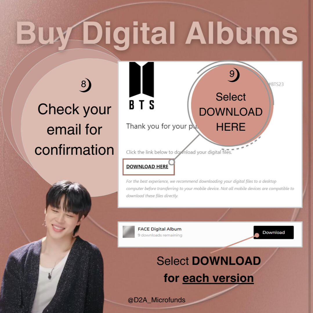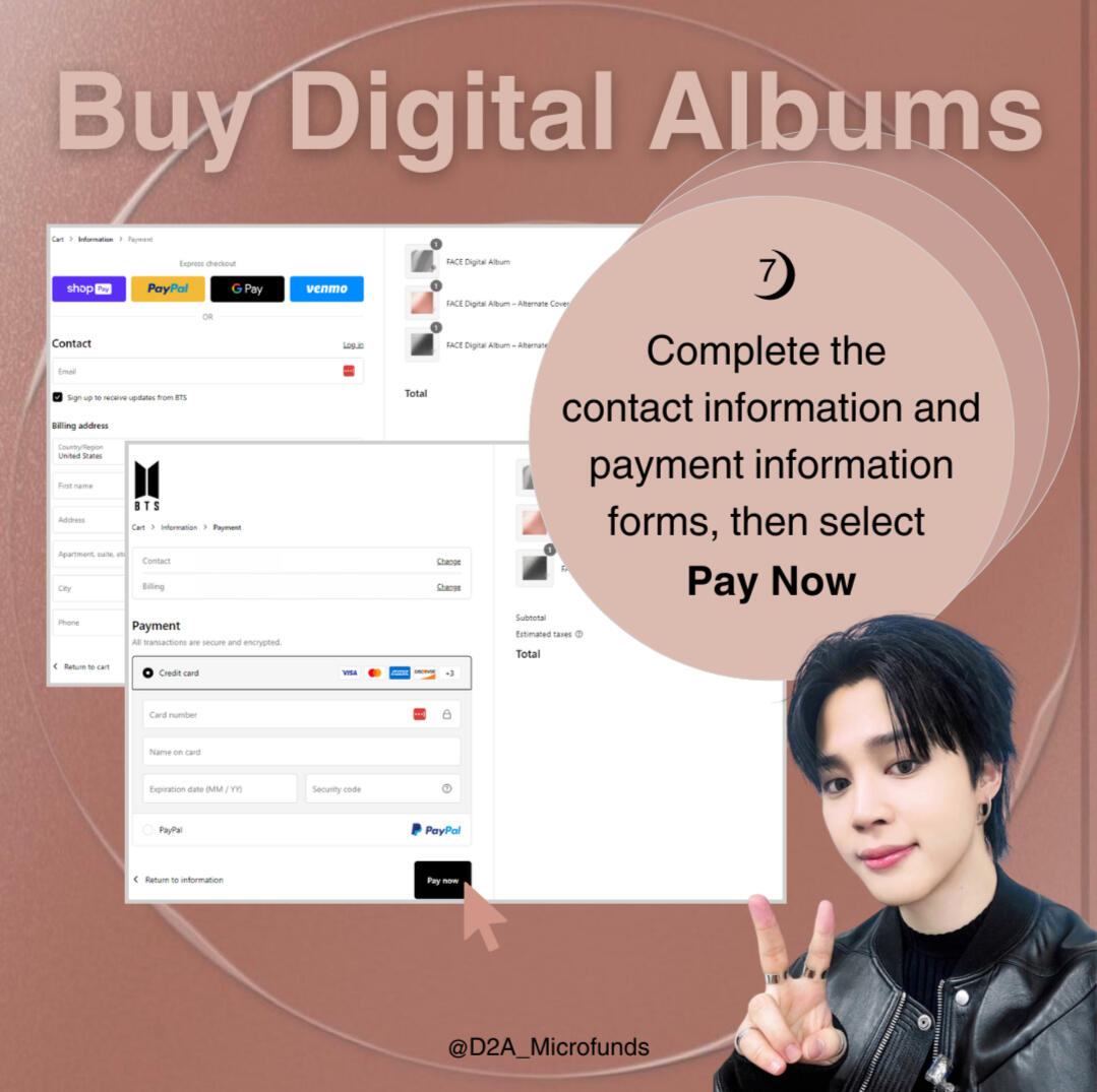 The quickest way to get funding to buy digital songs during a BTS or member comeback is to message us on any of our social media accounts.