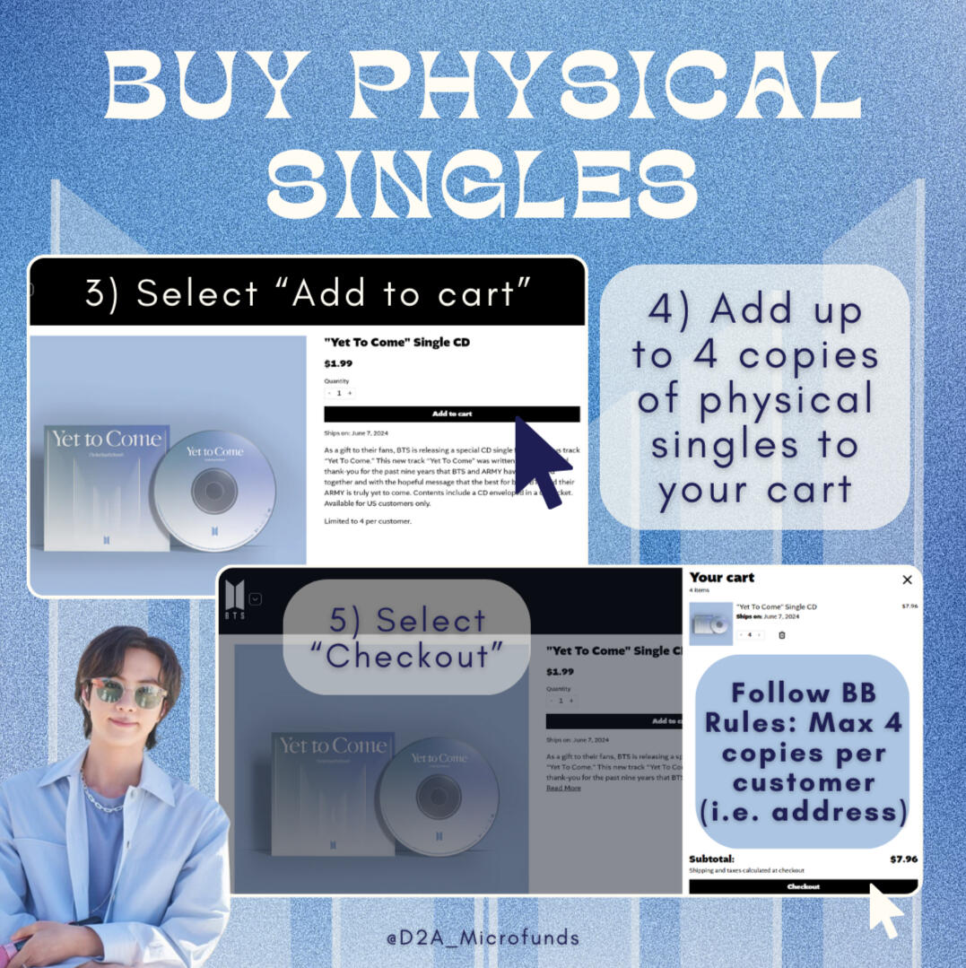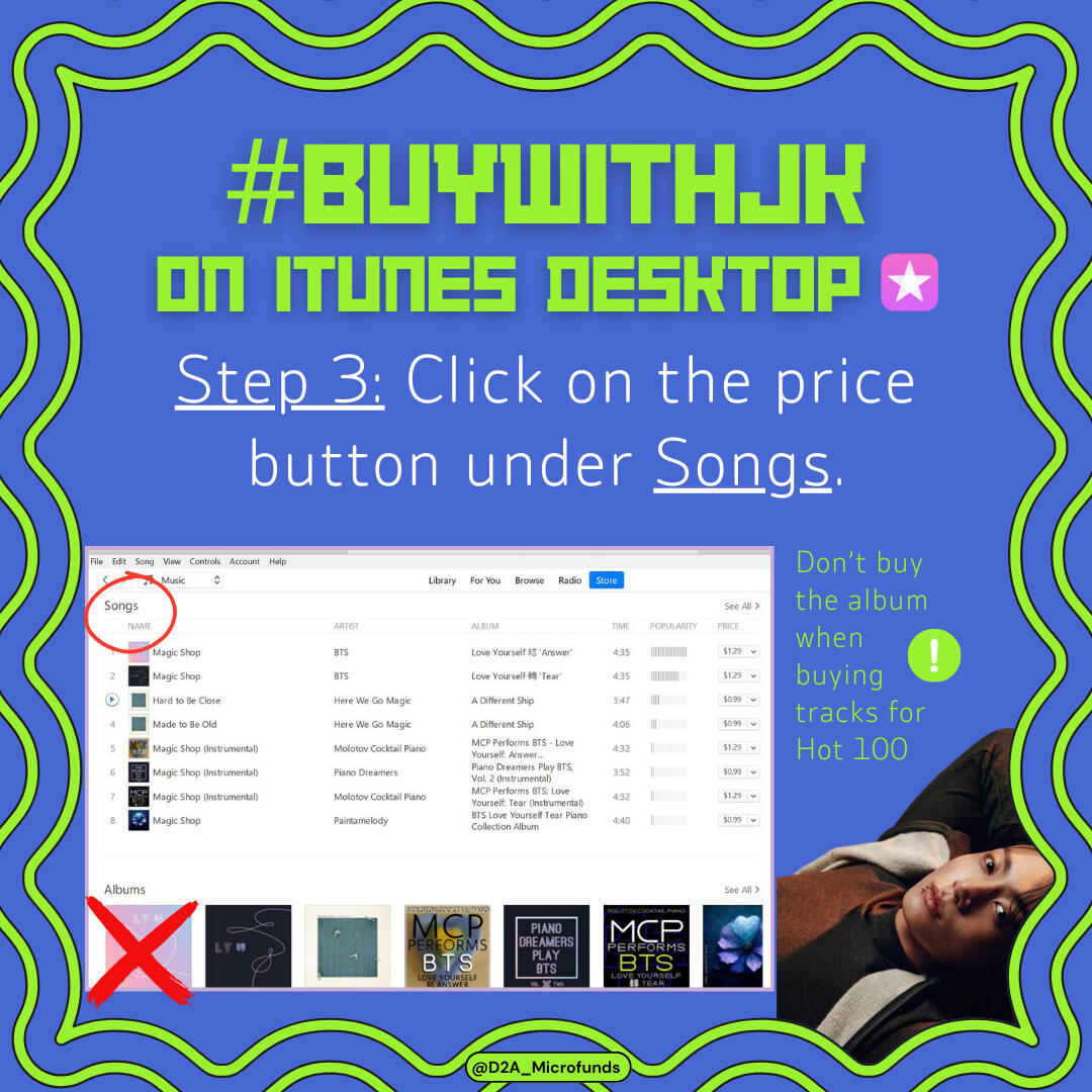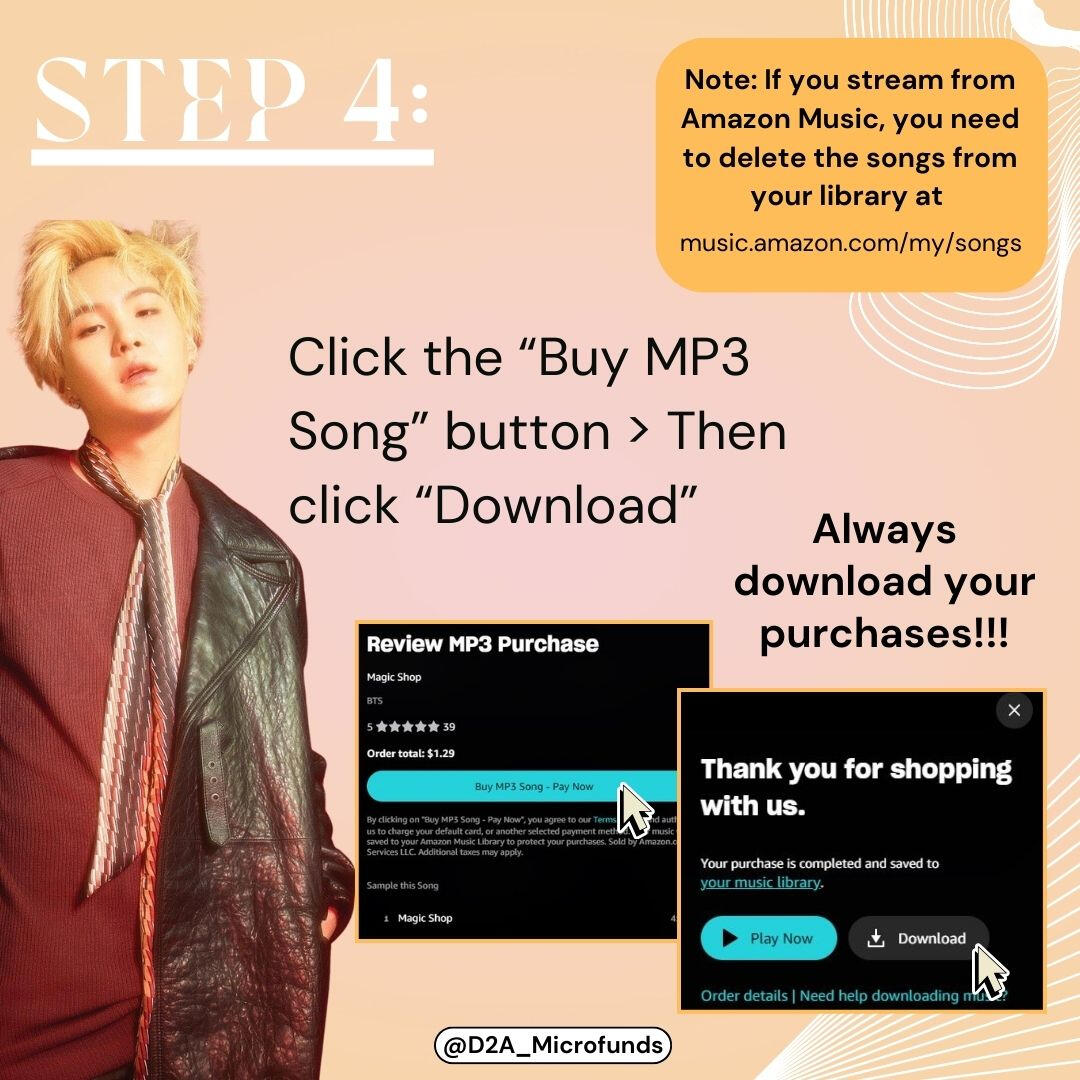 The quickest way to get funding to buy digital songs during a BTS or member comeback is to message us on any of our social media accounts.